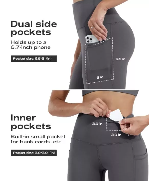සාක්කු සහිත ඉහළ ඉණ කකුල් ඔබේ දුරකථනය එක් සාක්කුවකට ලිස්සා ගොස් ඔබේ ක්රියාකාරකම් එක්ක, ඊටත් වඩා හොඳින්, ඊටත් වඩා හොඳින්, ඔබට යතුරු, ක්ලිප් හෝ මුදල් වැනි තොග වශයෙන් ගමන් කිරීමටද ඉඩ සලසයි.